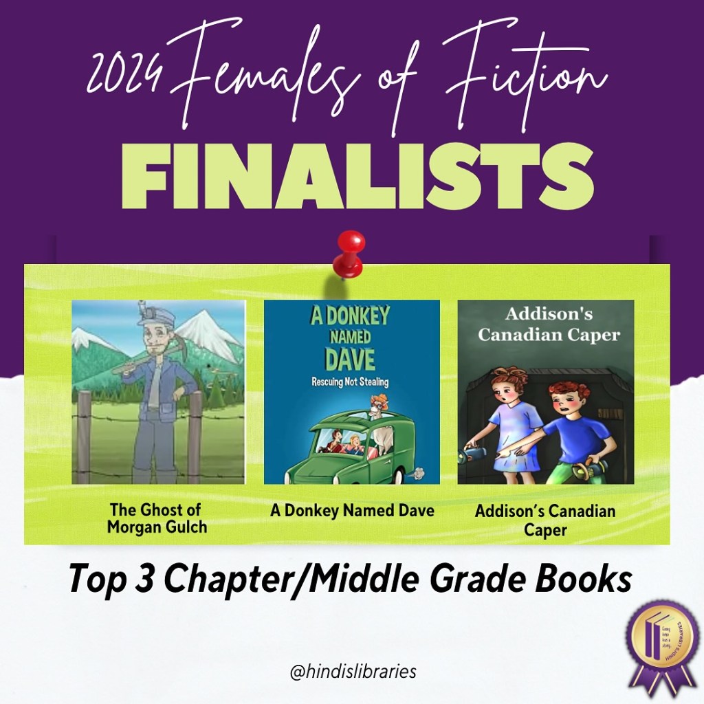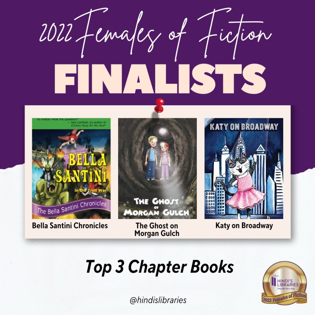 The Ghost of Morgan Gulch was a finalist in the 2022 Females of Fiction Contest sponsored by Hindi’s Libraries. I am honored to be selected as one of three finalists in the Chapter Books category. I am over the moon about this award and selection. I didn’t go on to be one of the winners but I am proud to have been selected as a finalist.